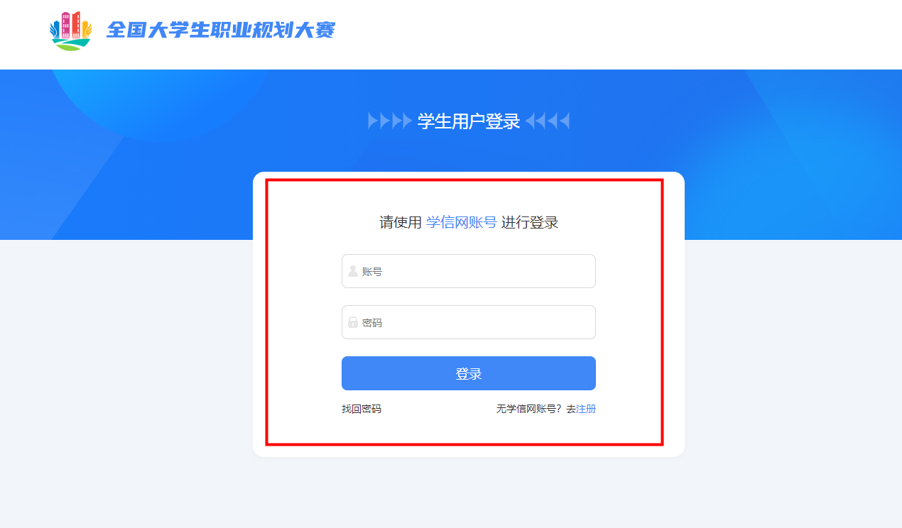 参赛选手平台首页-登录-选择学生用户身份-使用学信网账号登录。